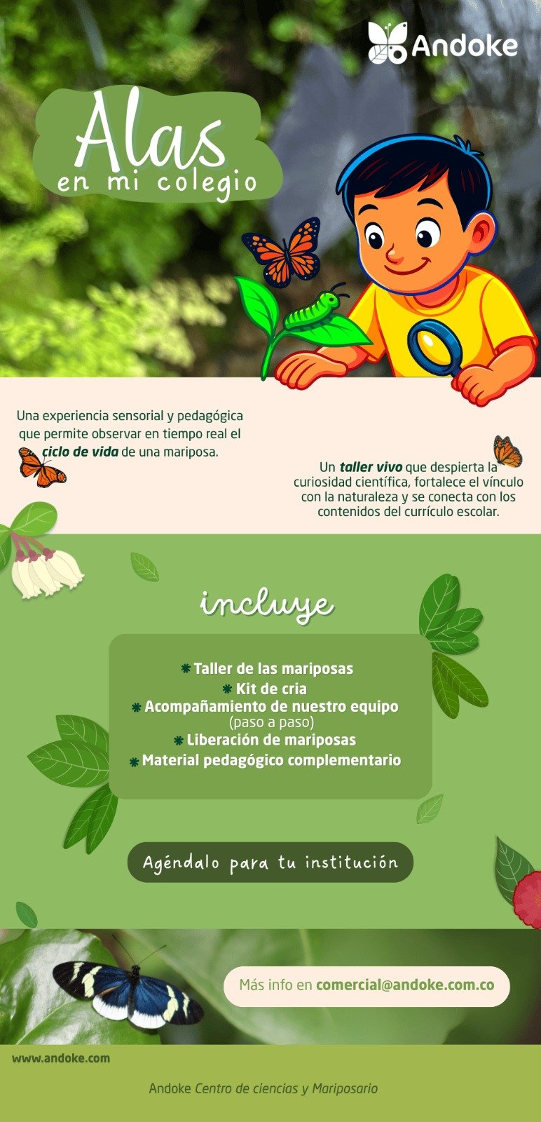 Llevamos la magia de Andoke directamente al aula, con una experiencia sensorial y pedagógica que permite observar en tiempo real el ciclo de vida de una mariposa.